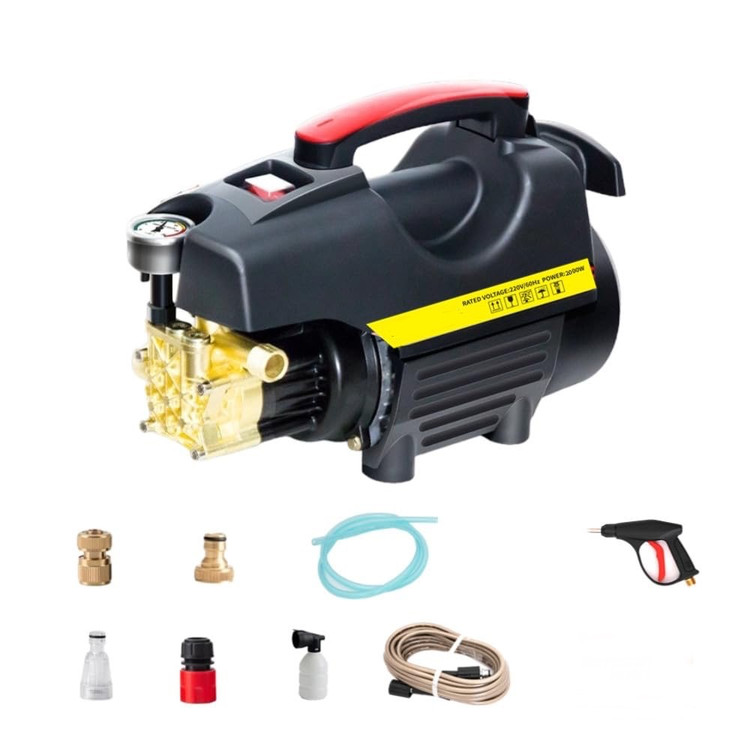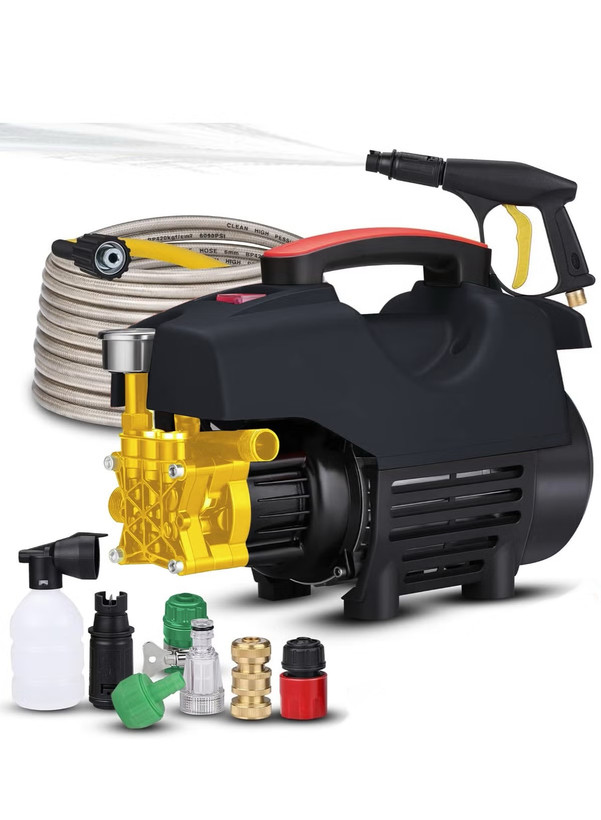 گان, شلنگ فشار قوی, شلنگ ورودی, دو عدد اتصالات ورودی, فیلتر بزرگ ، مخزن کف پاش |