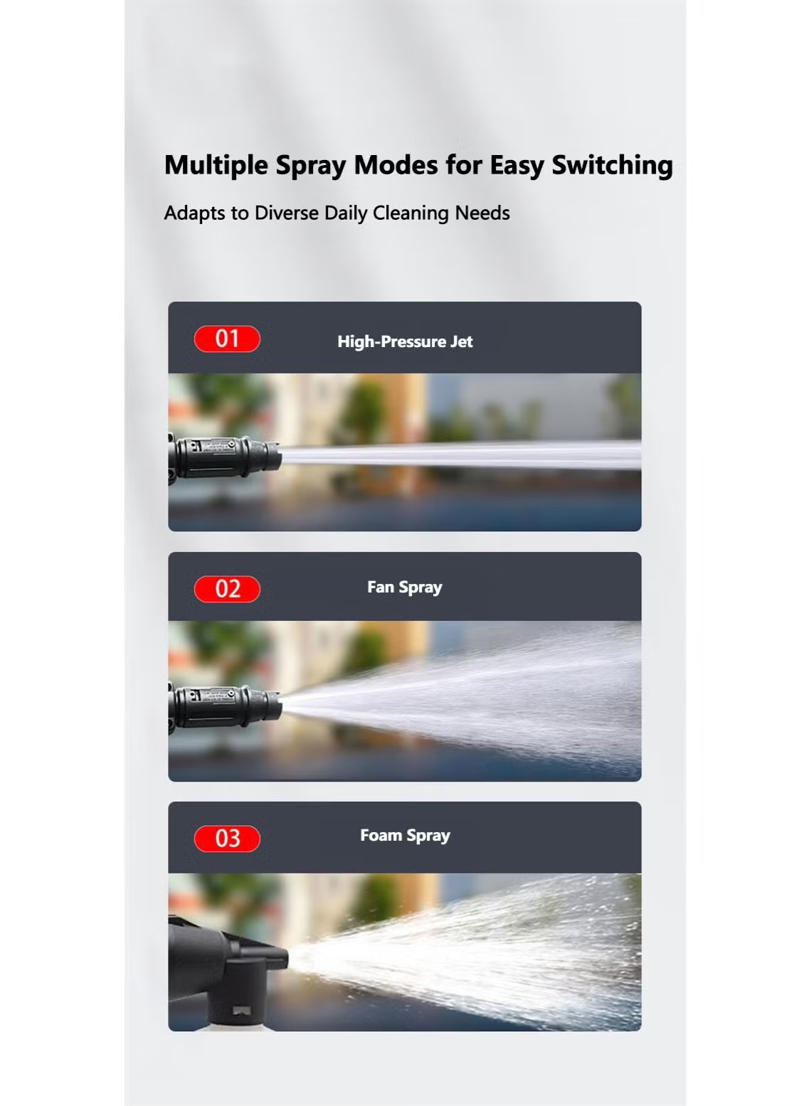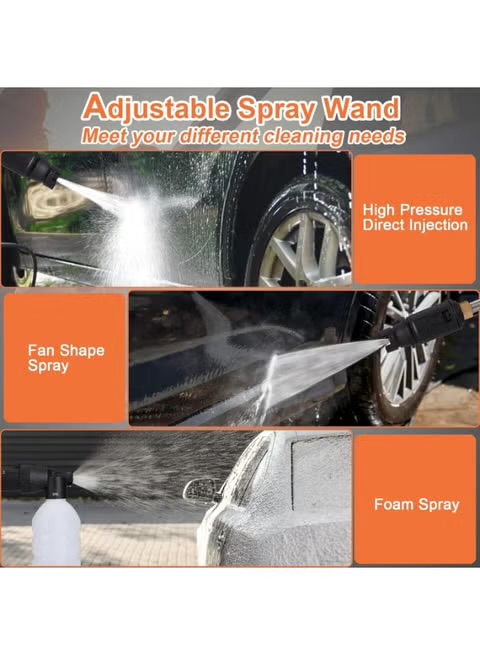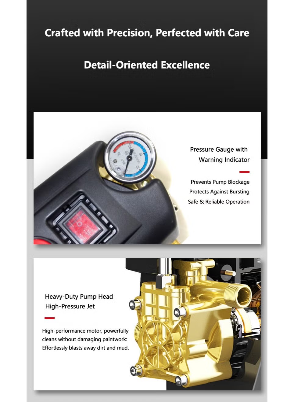 گان, شلنگ فشار قوی, شلنگ ورودی, دو عدد اتصالات ورودی, فیلتر بزرگ ، مخزن کف پاش |
